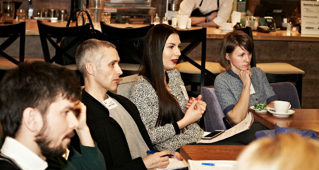 Уютная обстановка кофейни в центре города располагала к общению. Гости клуба активно принимали участие в обсуждении и решении кейса от Дмитрия Ермакова, дополняли всех спикеров. Не прекращались вопросы, постоянно звучали рассказы с «живыми» иллюстрациями из жизни уральских предпринимателей и представителей топ-менеджмента. Каждый делился наболевшими проблемами и новыми идеями. Тема клуба была выбрана не случайно и оказалась более чем актуальной! Каждому нашему гостю чрезвычайно важно оказаться в КРУГу друзей и единомышленников, проговорить мысли, которые давно волнуют, услышать на расстоянии вытянутой руки мнение эксперта-практика, а потом взглянуть на себя и своё дело со стороны – примерить другой «деловой костюм». На первой встрече Клуба Русской Управленческой Грамотности все пункты программы были выполнены! После того как собрание клуба было окончено, гости еще долго знакомились друг с другом в кулуарах, назначали встречи и просто приятно проводили время за чашечкой кофе.
